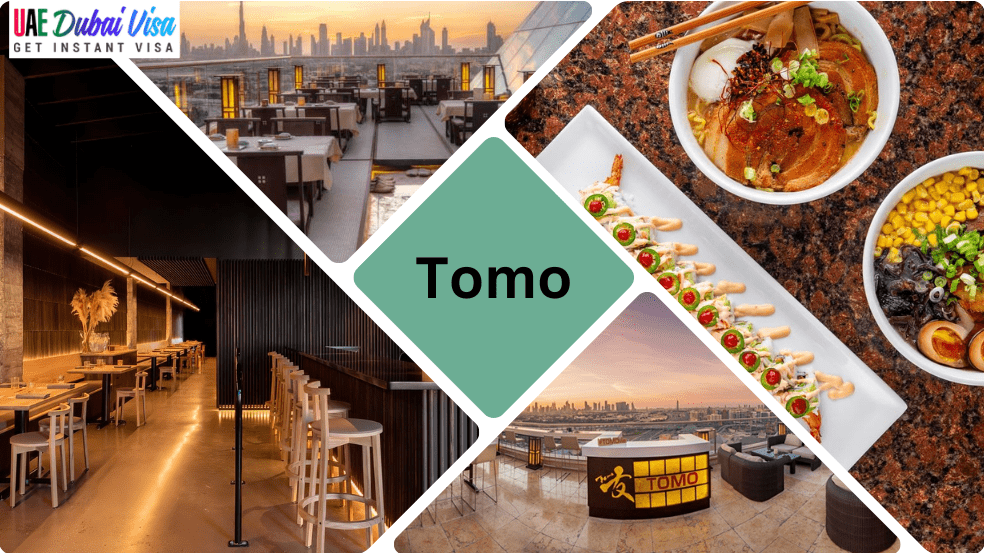 Tomo is an award-winning Japanese rooftop restaurant and bar on the 17th floor of the grand five-star Raffles Hotel in the older part of Dubai. This is the best rooftop restaurant in Dubai, with amazing views of the new and ever-evolving skyline.